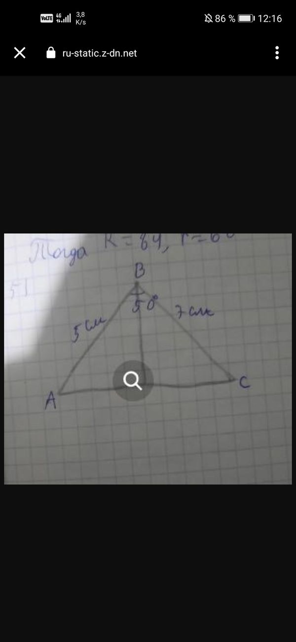 Постройте треугольник по сторонам АВ=5 см, ВС=7 см и углу ∠АВС = 50°. В полученном треугольнике постройте серединный перпендикуляр к стороне АС.