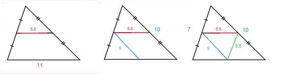 ПОМОГИТЕ ПОЖАЛУЙСТА!!!Стороны треугольника равны 11 см 7 см и 10 см .Найдите стороны треугольника вершинами которого являются середины сторон данного треугольника.
