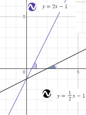 Но прямая y=2x-1 имеет больший угол наклона, k=2