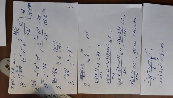 Решите неравенство 0,25^((3x-2)/(x+2)) · 14^x · x^(-2) ≤ 2^((3x-2)/(x+2)) · 112^x / 4x^2.