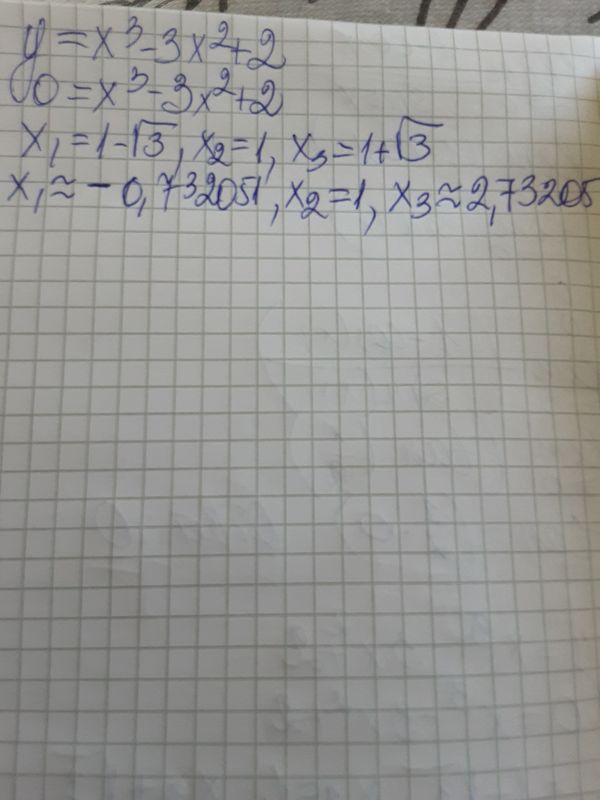 5) Исследовать на экстремумы и построить график [m]y = x^3 - 3x^2 + 2[/m]