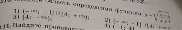 10.Найдите область определения функции y = √(x - 4)/(x + 1): 1) (-∞;-1) ∪ [4;+∞); 2) (-∞;-1] ∪ [4;+∞); 3) [4;+∞); 4) (-1;4]. 11.Найдите производн...