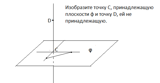 СРОЧНО!!! Изобразите точку С, принадлежащую плоскости φ и точку D, ей не принадлежащую. Сделайте соответствующие записи.