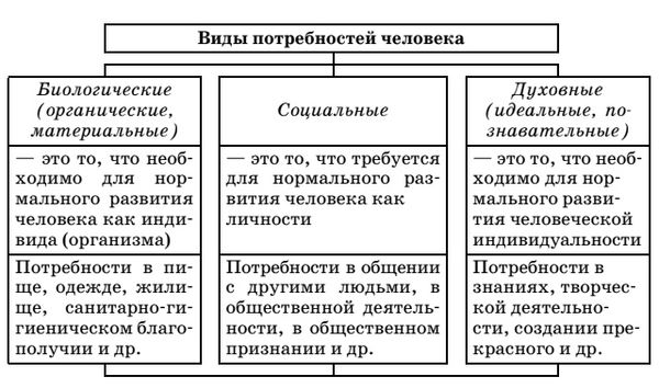A) потребность в воздухе, воде, пище