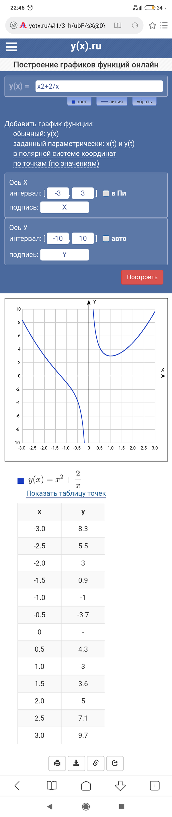 Знайдіть функцію: f(x) =x^2+2/x, у точці x0=3