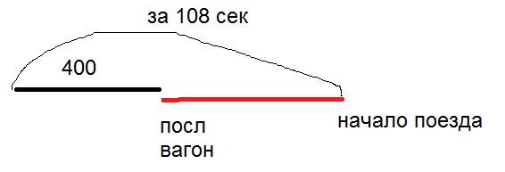 По двум параллельным железнодорожным путям в одном направлении следуют скорый и пассажирский поезда, скорости которых равны соответственно 60 км/ч и 30 км/ч. Длина пассажирского поезда равна 400 метрам. Найдите длину скорого поезда, если время, за которое он прошел мимо пассажирского поезда, равно 108 секундам. Ответ дайте в метрах.