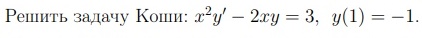 Решить задачу Коши: x²y' - 2xy = 3, y(1) = -1.