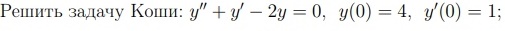 Решить задачу Коши: y" + y' - 2y = 0, y(0) = 4, y'(0) = 1;