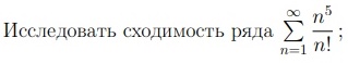 Исследовать сходимость ряда ∑(n=1 to ∞) (n^5 / n!)
