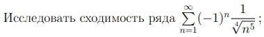 Исследовать сходимость ряда ∑(−1)ⁿ (1/√(n⁵)), n=1 до ∞;