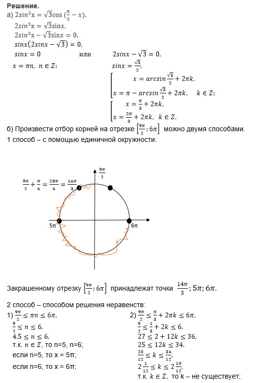 а) Решите уравнение 2sin^2x = sqrt(3)cos(Pi/2-x)