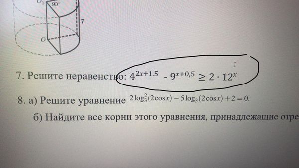 7. Решите неравенство: [m] 4^{(2x + 1.5)} - 9^{(x + 0,5)} \geq 2 \cdot 12^x [/m]
