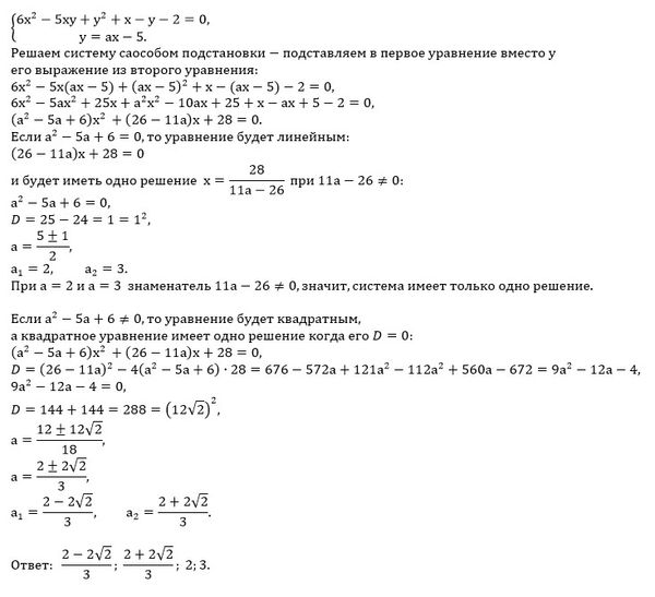 если 6-5а+a^2 ≠ 0, то квадратное уравнение имеет одно решение, если дискриминант квадратного уравнения D=0 ⇒