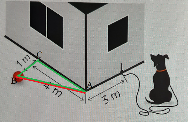 Затем она должна пойти от точки А (угол дома) до мяча -точка В.