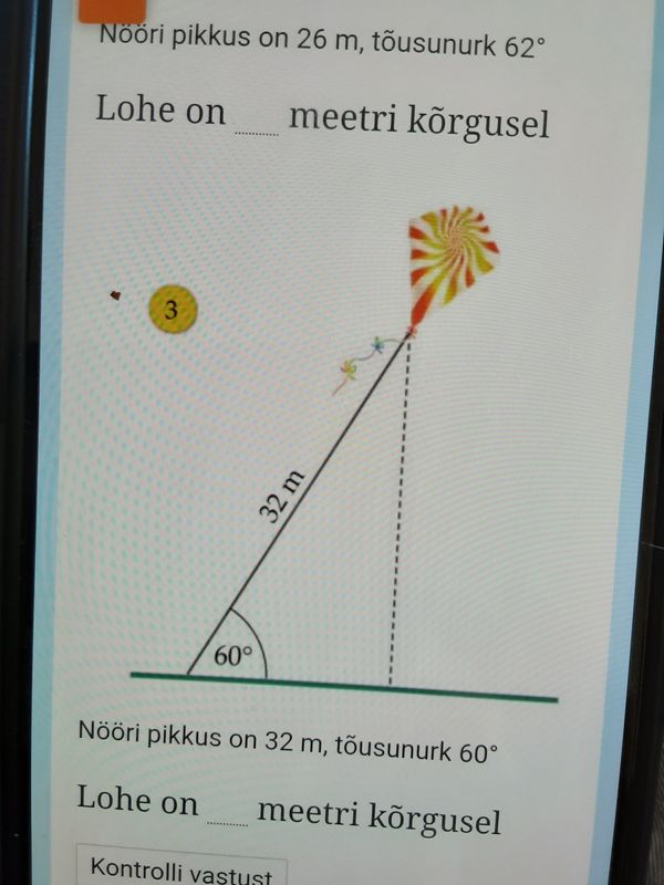 Известна длина веревки и угол, На какой высоте воздушный змей? Спасибо!!!!!!