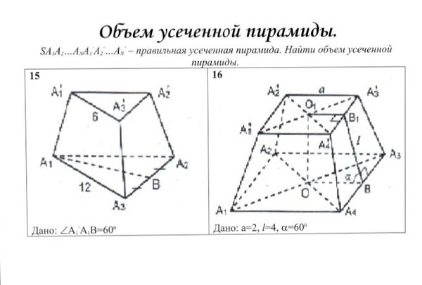 Сторона верхнего основаниЯ усеченной пирамиды а, а=2