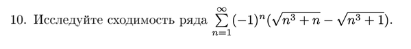 Полученный знакочередующийся ряд сходится по признаку Лейбница.