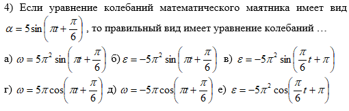 α = 5 sin(πt + π/6), то правильный вид имеет уравнение колебаний …