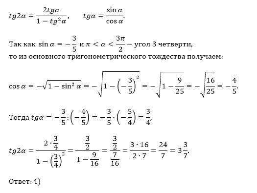 Дано: sin a= -3/5 , где π<a<3π/2. Найдите: tg 2a