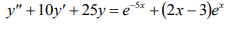 Составляем характеристическое уравнение: k^2+10k+25=0 k_(1) =k_(2)=-5 – корень действительный кратный f(x)=f_(1)(x)+f_(2)(x) ⇒ y_(част)=y_(част 1)+y_(част 2) y_(част 1)=Ax^2e^(-5x) y_(част 2)=(ax+b)*e^(x)