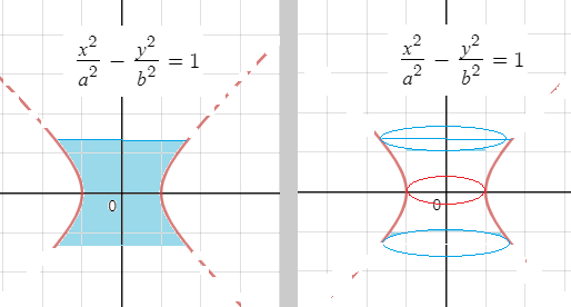 (x^2/a^2)-(y^2/b^2)=1 ⇒ x^2=a^2*(1+(y^2/b^2)) ψ ^2(y)=a^2*(1+(y^2/b^2)) V=π ∫ ^(b)_(-b)a^2*(1+(y^2/b^2))dy=π(a^2)*(y+(y^3/(3b^2)))|^(b)_(-b)=π*a^2*(2b+(2/3)b)=(8/3)πa^2b