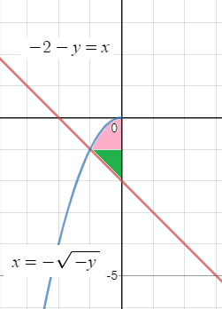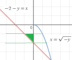 -sqrt(-y)< x < 0 - это часть полосы, ограниченная графиком х=- sqrt(-y) и осью Оу (x=0)