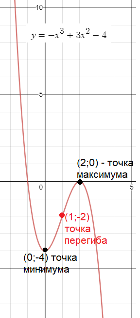 x=1 - точка перегиба