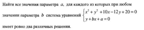 D=(2ab+10-12b)^2-4*(1+b^2)(a^2-12a+20) >0 ⇒