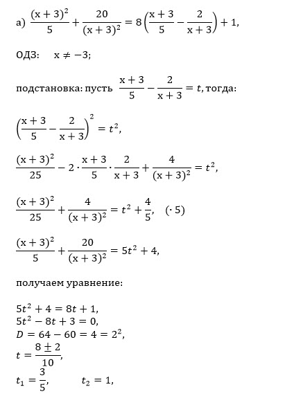 а) решите уравнение (х+3)^2/5+20/(х+3)^2=8(х+3/5-2/х+3)+1 б) найдите его корни, принадлежащие отрезку [-6; -4]