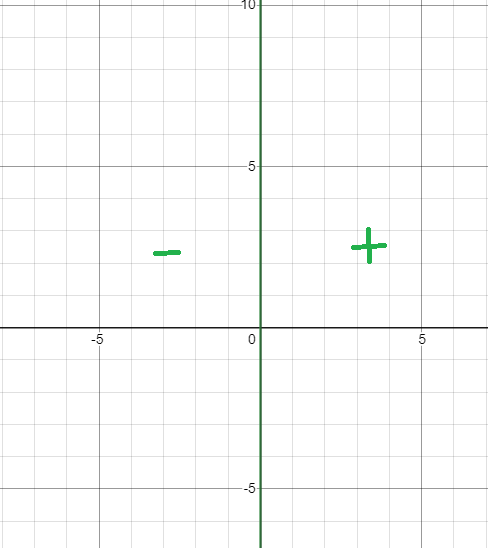Прямая x=0 разбивает координатную плоскость на две части (рис.2)
