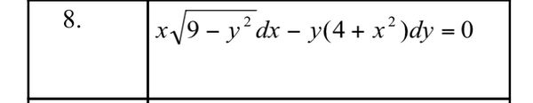 8. x√9 - y² dx - y (4 + x²) dy = 0
