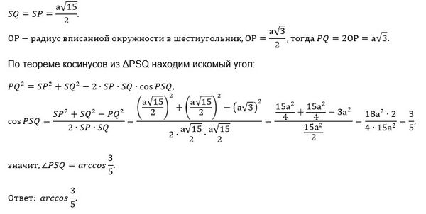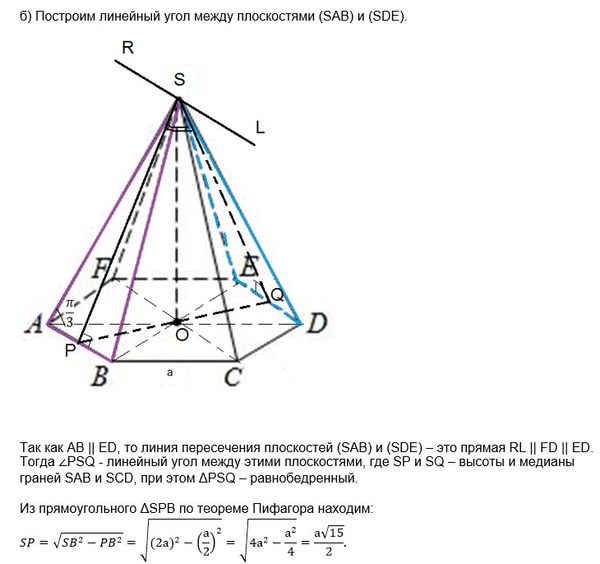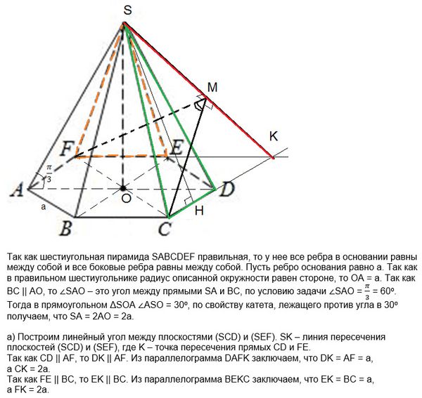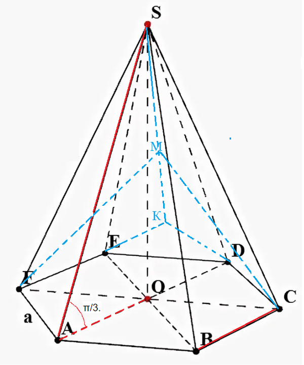 ⇒ SA=SB=SB=SC=SD=SF=SE=2AD=2AB=[b]2a[/b], [b]а[/b]- сторона основания шестиугольника