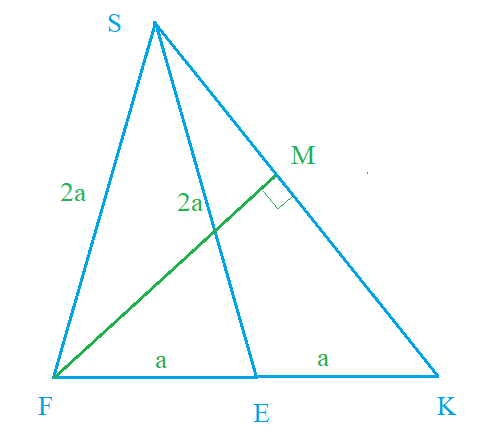 S_( ΔSFK)=(1/2) SK*FM ⇒ SK*FM=FK*h_(FK) ⇒ asqrt(6)*FM==2a*[b](a/2)*sqrt(15)[/b]