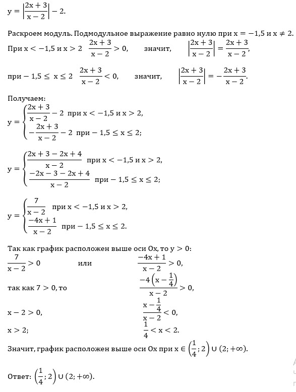 [m]y=|\frac{2x+3}{x-2}|-2[/m] расположен выше оси Ох, надо решить
