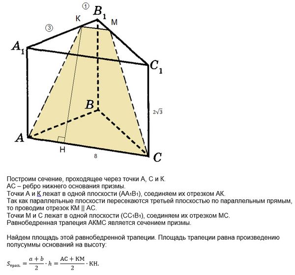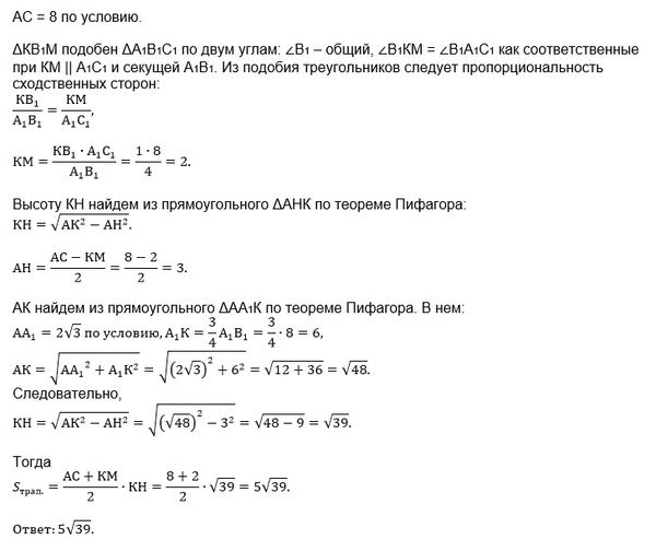 S_( сеч AKFC)=(1/2)*(AC+KF)*KP=(1/2)*(8+[blue]2[/blue])*sqrt(39)=[b]5sqrt(39)[/b]