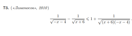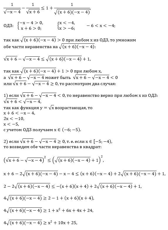 Если [m] \frac{1}{\sqrt{-x-4}}-\frac{1}{\sqrt{x+6}} ≤ 0[/m],
