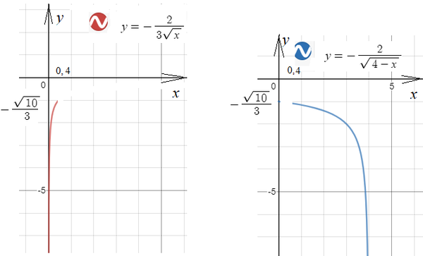 [m]\left\{\begin{matrix} 0 < x\leq 0,4\\ -\infty < -2\cdot \frac{1}{3\sqrt{x}} \leq- \frac{\sqrt{10}}{3}\\ -2\cdot \frac{1}{3\sqrt{x}} \geq a\end{matrix}\right.[/m]или[m]\left\{\begin{matrix} 0,4<x<4\\ -\infty <-2\cdot \frac{1}{\sqrt{4-x}} \leq - \frac{\sqrt{10}}{3}\\-2\cdot \frac{1}{\sqrt{4-x}} \geq a \end{matrix}\right.[/m]