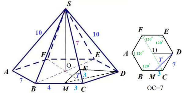 Боковые ребра равны: SA=SB=SC=SD=SE=SF=10