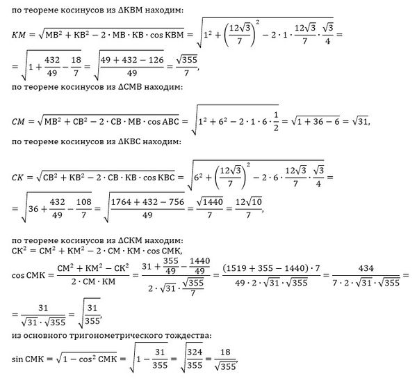 S_( Δ КМС)=[m]\frac{1}{2}CM\cdot KP=\frac{1}{2}\cdot \sqrt{31}\cdot \frac{18}{7}=[/m]