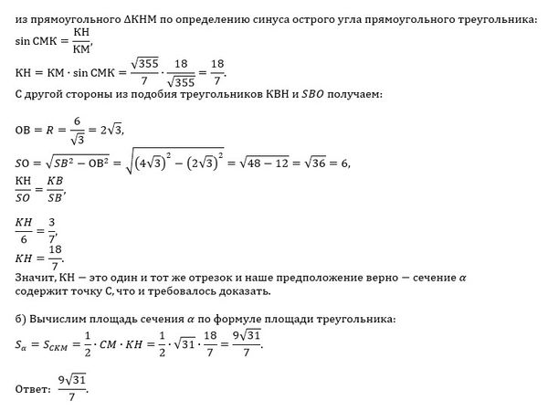 О т в е т. S_(сечения)=[m]=\frac{9}{7}\sqrt{31}[/m]