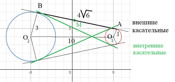 Среди всех прямых, касающихся этой кривой в двух точках, найдите ту прямую, которая наименее удалена от точки с координатами (10 - 4√6; 6).