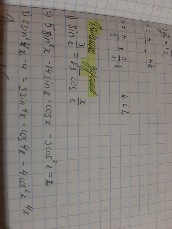 4x=arctg0+πk, k ∈ Z или 4x=arctg1,5+πn, n ∈ Z