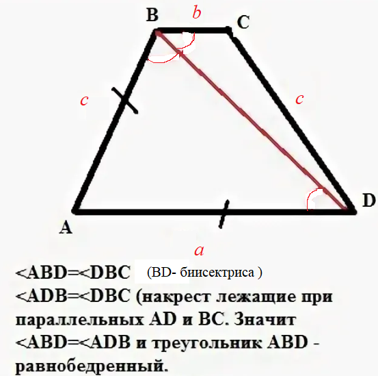 3)диагональ делит тупой угол пополам ⇒ Δ ABD - равнобедренный,