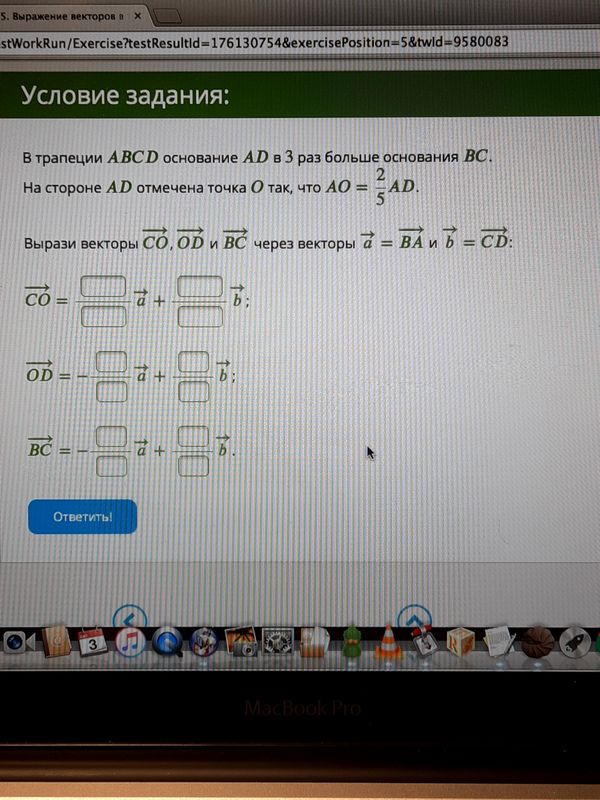 vector{AO}=0,6*vector{AK}=-0,6*vector{a}+0,6vector{b}