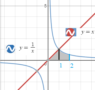 Вычислить объём тела, образованного вращением вокруг оси Ox фигуры, ограниченной линиями xy = 1, y = x, x = 2