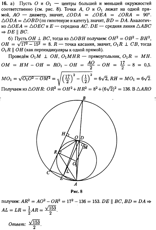 б) L — точка пересечения RA и DE. Найдите AL, если радиус большей окружности 17, а ВС = 30.