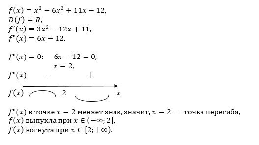 Найдите точки перегиба и промежутки выпуклости (вогнутости) графика функции [m]f(x)=x^3 - 6x^2 + 11x - 12[/m].