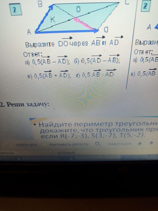 Дано АВСД параллелограмм,О точка пересечения диагоналей.