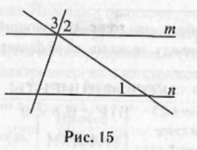 15. Прямые [m] m [/m] и [m] n [/m] параллельны (см. рис. 15). Найдите [m] ∠3 [/m], если [m] ∠1 = 43° [/m], [m] ∠2 = 65° [/m]. Ответ дайте в градусах.