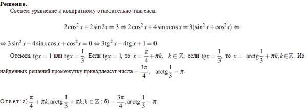 а) Решите данное уравнение 2cos^2x+2sin2x=3. б) Укажите корни данного уравнения, принадлежащие промежутку [-3Pi/2; -Pi/2]